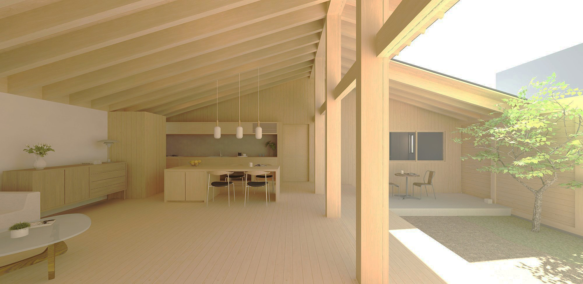 内庭のある平屋の木の家が完成しました。